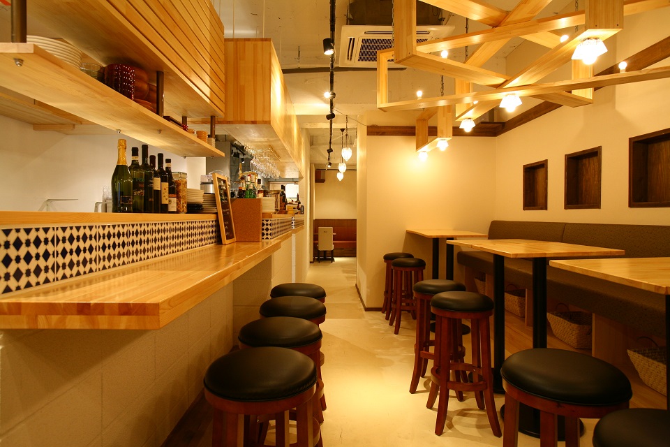 居酒屋だった店舗を解体後、スケルトンの状態から施工をしました。
