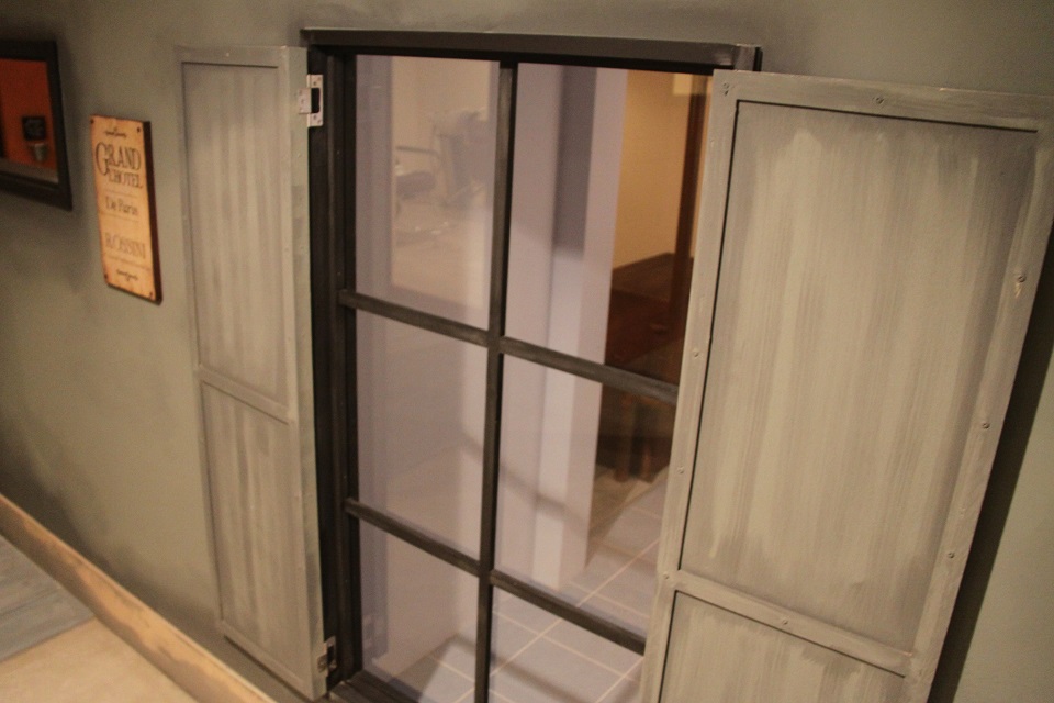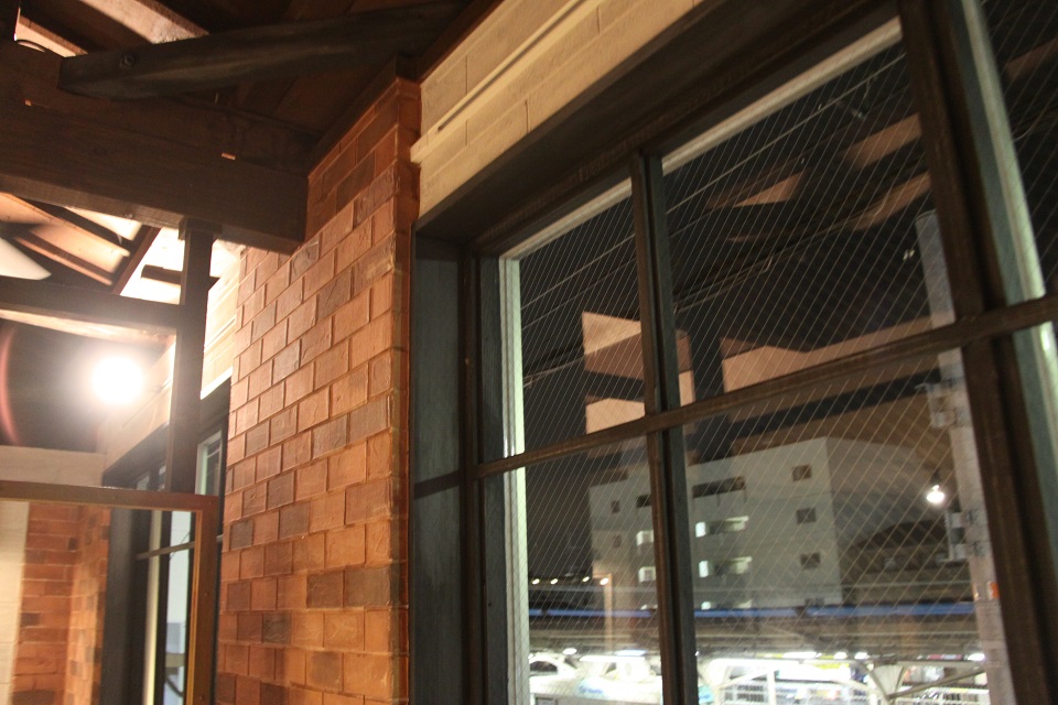 店舗内の間仕切りと窓、フロントのカッティングシートや
