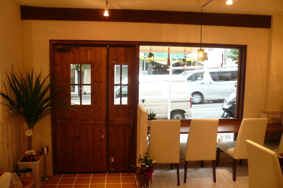 フロント部分は解体せず既存のものを生かして木枠などで装飾し、前店舗からのイメージを一新させています!